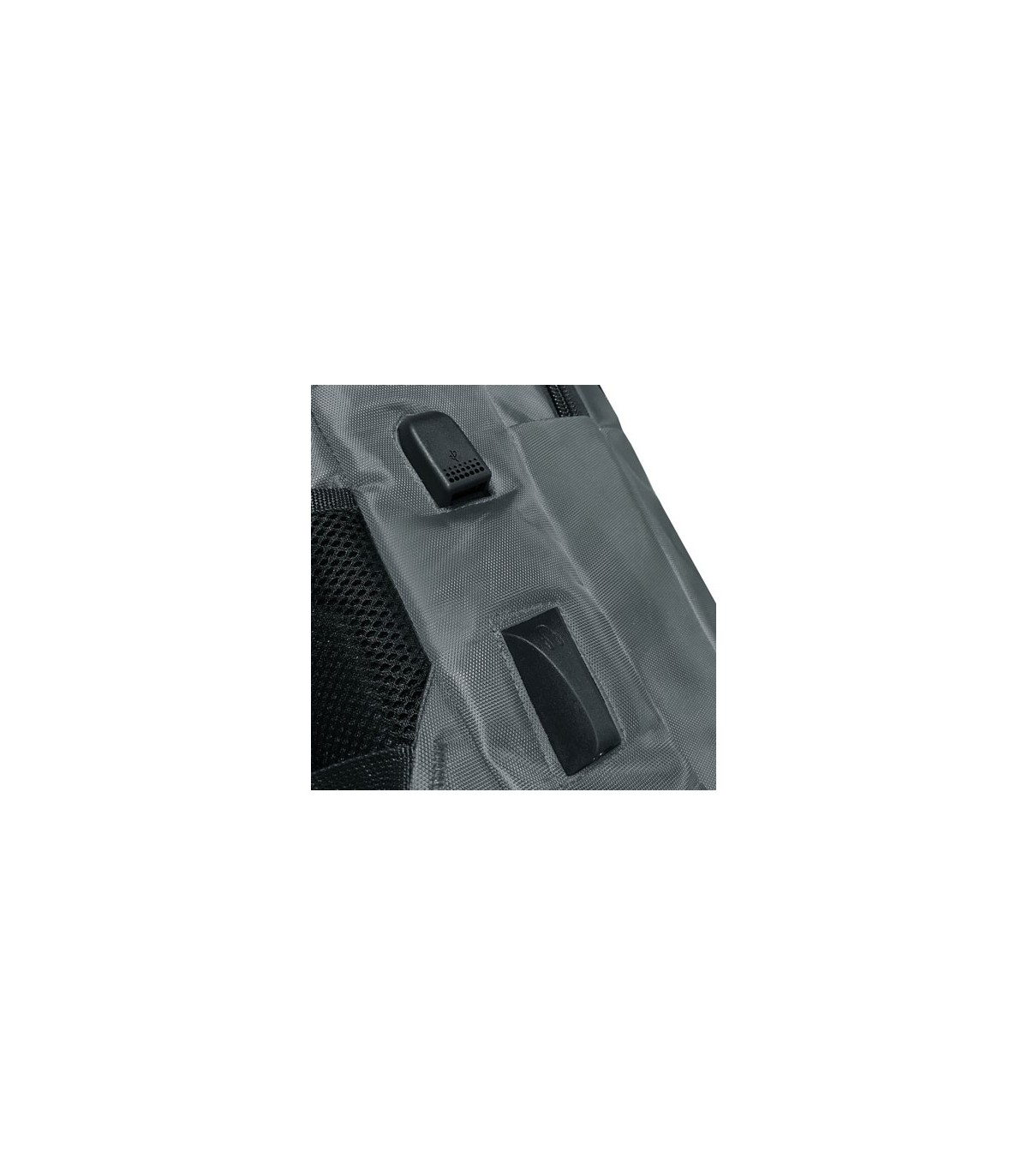 این کوله دارای جک هندزفری (handsfree port) برای اتصال به گوشی موبایل و انواع پلیرها و دارای جک (USB) برای اتصال پاوربانک است. محفظه دیگر کیف دارای فضایی جادار و مناسب برای قرارگیری سایر وسایل مورد نیاز مانند (کتاب، جزوات، دفترچه یادداشت و…) می باشد. محفظه زیپی جلویی کیف نیز دارای جیب های کوچک می باشد و همچنین در قسمت جلوی کیف محفظه چسبی قرار دارد. در هر طرف کیف نیز دو جیب زیپی قرار دارد.