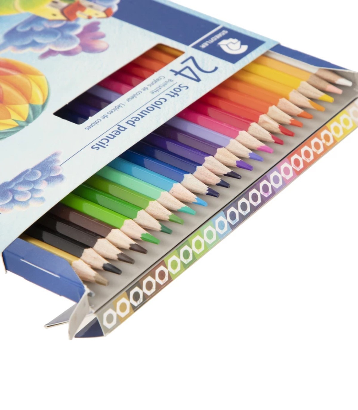 این مدل دارای 24 رنگ غنی و متنوع است که به طرحها و نقاشیهای شما زندگی میبخشد. مغز نرم مدادها یکی از ویژگیهای اصلی این محصول است که امکان رنگآمیزی با کمترین فشار را فراهم میکند. این نرمی، رنگی عمیق و جذاب ایجاد میکند و به شما کمک میکند تا طرحهای پیچیده را با دقت بیشتری رنگآمیزی کنید.