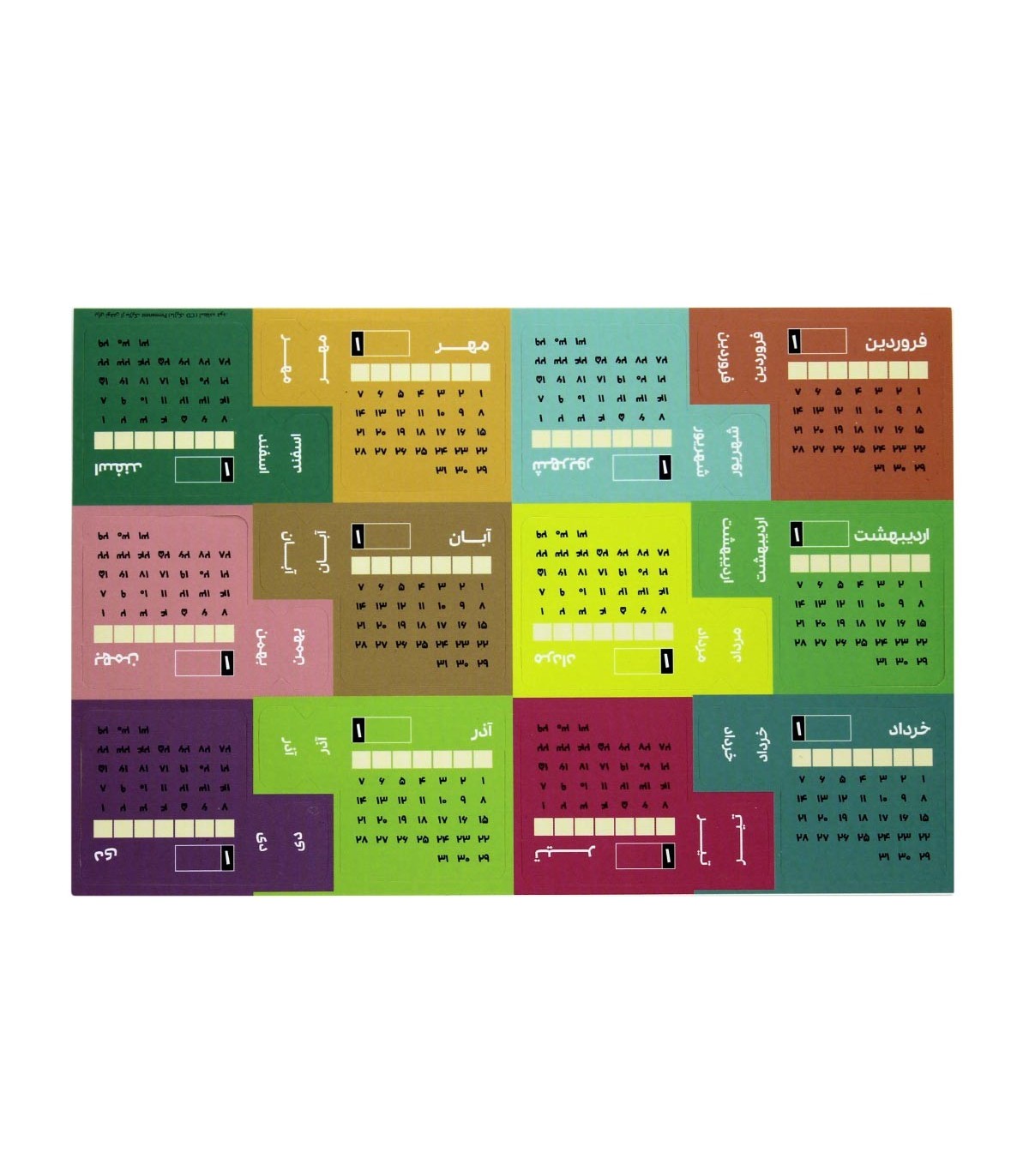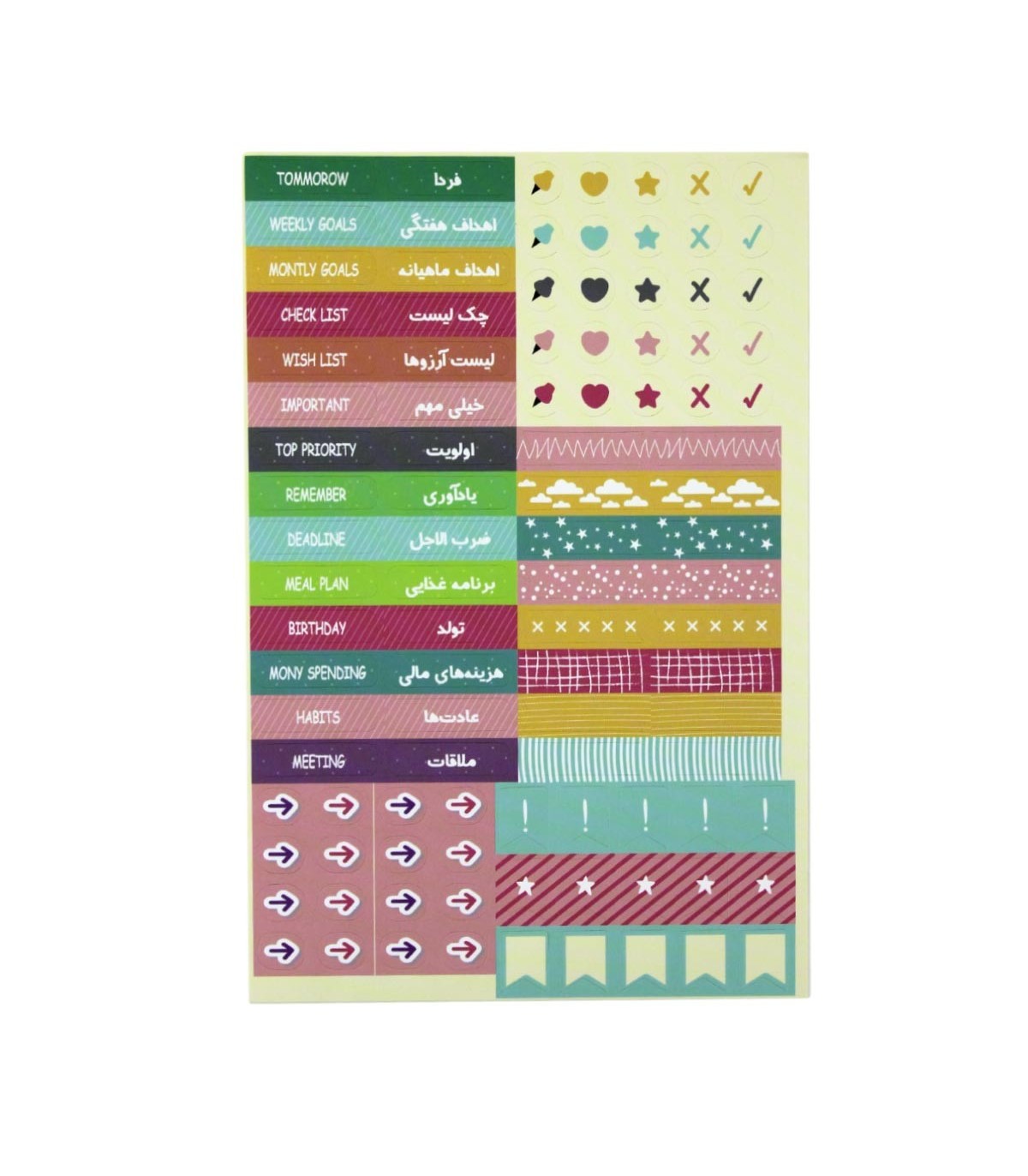 در انتهای دفتر یک جیب مخصوص برای قرار دادن استیکر در درون آن گذاشته شده که در آن استیکر های تقویم ماهانه کل سال، ماه های سال، روزهای هفته و نشانه ها و علائم مورد استفاده در بولت ژورنال قرار داده شده.
