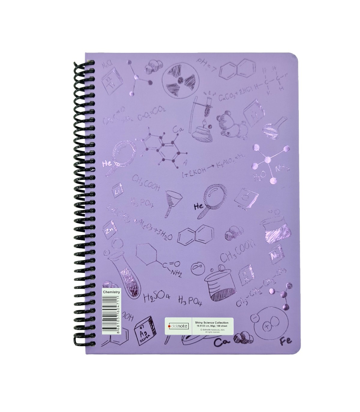 دفتر شیمی دات نوت مدل Shiny با 100 برگ به اندازه کافی فضا برای یادداشتبرداری از درسها و موضوعات مختلف ارائه میدهد. طراحی صفحات این دفتر به گونهای است که هم برای نگارش مطالب درسی و هم برای ترسیم نمودارها و فرمولهای شیمی بسیار مناسب است. فضای کافی بین خطوط و کیفیت بالای کاغذ، به کاربر این امکان را میدهد که با هر نوع قلمی بهراحتی روی صفحات بنویسد، بدون آنکه جوهر به صفحات بعدی نفوذ کند.