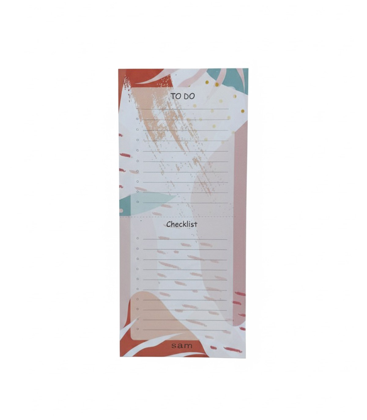 یادداشت چکلیست ۵۲ برگ سم (s.a.m) با طراحی کاربردی، هم برای نوشتن کارهای روزانه (To Do) و هم برای دوشتن یک چکلیست منظم استفاده میشود. این محصول با سایز ۲۱×۹ سانتیمتر و کاغذ تحریر ۱۰۰ گرمی، تجربهای روان و خوشایند از نوشتن را فراهم میکند.