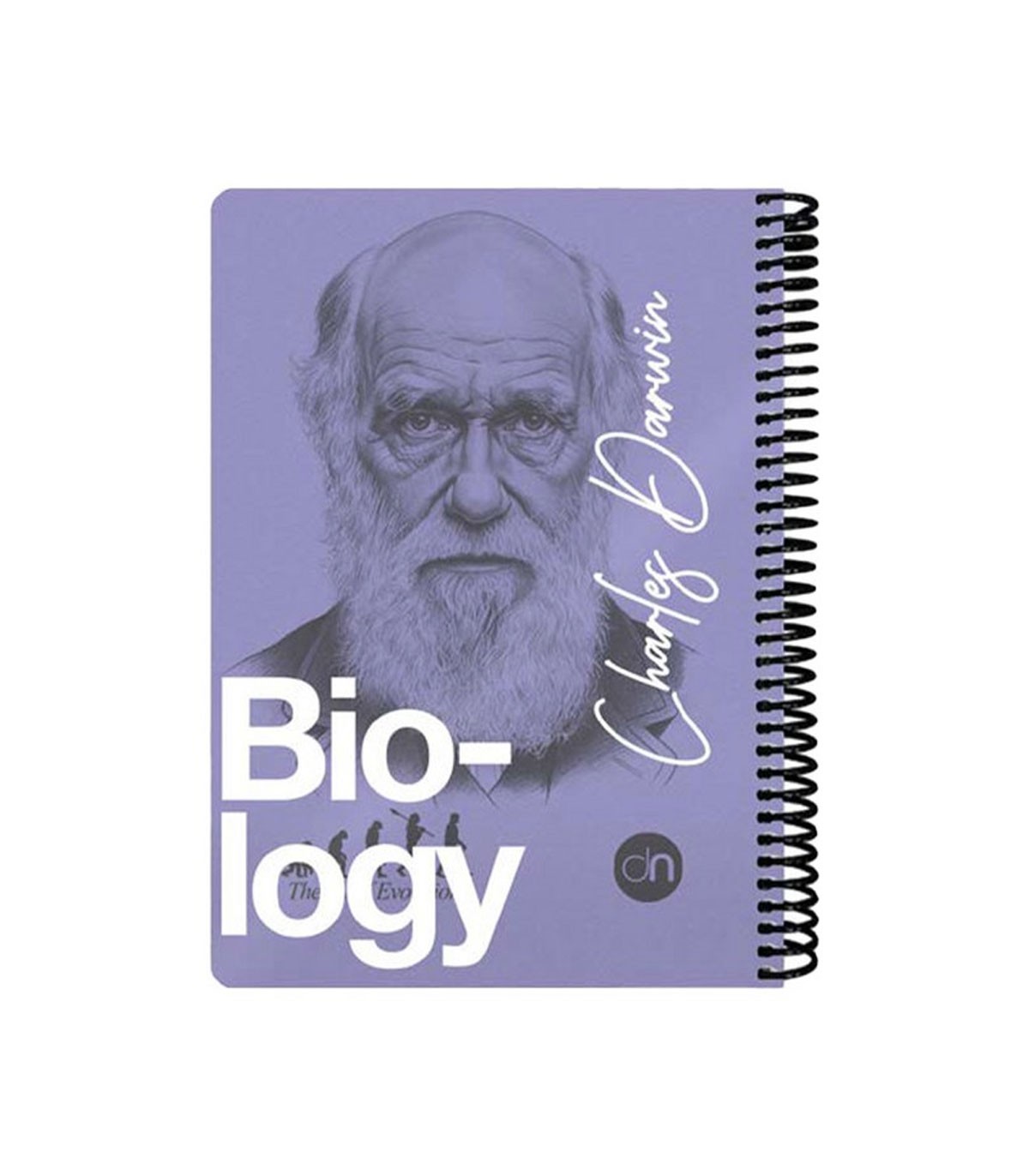 جلد دفتر از ترکیب طلق و مقوا ساخته شده که هم دوام بالایی دارد و هم جلوهای زیبا و محافظتشده به آن میبخشد. تصویر چارلز داروین، پدر نظریهی تکامل، با نگاهی ژرف و متفکر روی جلد نقش بسته و مخاطب را به کنکاش در پیچیدگیهای طبیعت و سیر تحول موجودات زنده دعوت میکند. این انتخاب هنرمندانه از چهرهای تأثیرگذار در تاریخ علم، نهتنها جنبهی علمی دفتر را برجسته میکند، بلکه میتواند انگیزهبخش دانشجویان، پژوهشگران و علاقهمندان به زیستشناسی و فلسفهی علم باشد.