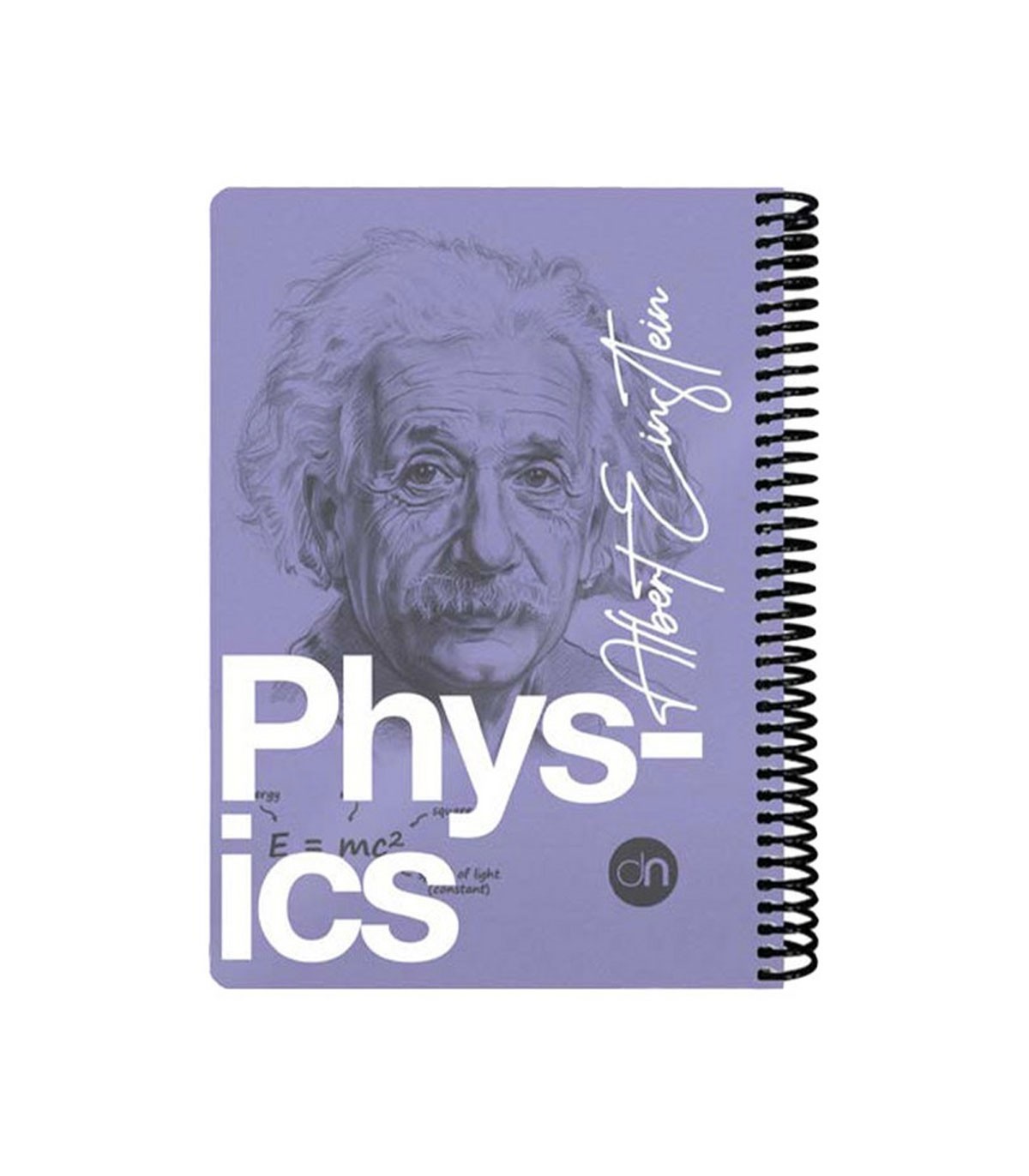 جلد دفتر از ترکیب طلق و مقوا ساخته شده که ضمن دوام بالا، جلوه‌ای زیبا و محافظت‌شده به آن می‌بخشد. تصویر انیشتین، نظریه‌پرداز بزرگ نسبیت و یکی از تأثیرگذارترین چهره‌های تاریخ علم، با چهره‌ای متفکر و نگاهی عمیق روی جلد نقش بسته و مخاطب را به دنیای پیچیده و شگفت‌انگیز فیزیک دعوت می‌کند. این انتخاب هنرمندانه از چهره‌ای جهانی، نه‌تنها جنبه‌ی علمی دفتر را برجسته می‌کند، بلکه می‌تواند انگیزه‌بخش دانش‌آموزان، دانشجویان، پژوهشگران و علاقه‌مندان به علوم پایه باشد.