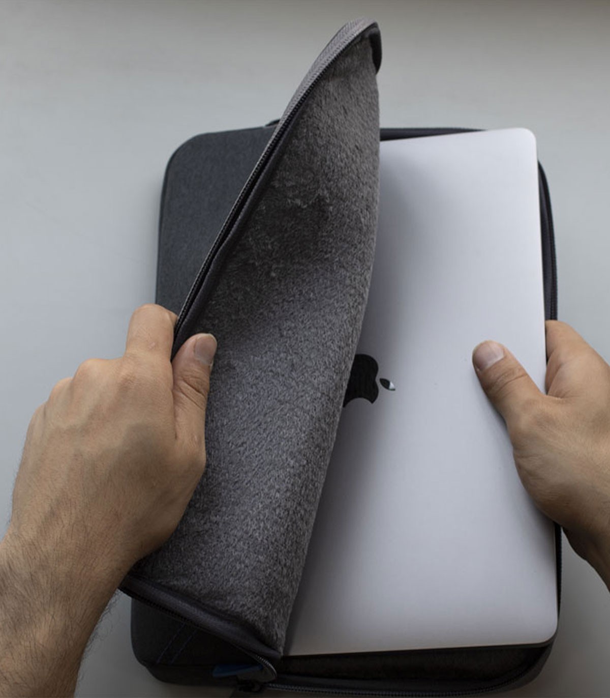 بافت بسیار نرم و مخملی آستر پولیشی درون کاور؛ سطح خارجی لپ تاپ را از خط و خش های احتمالی حفظ می کند.
