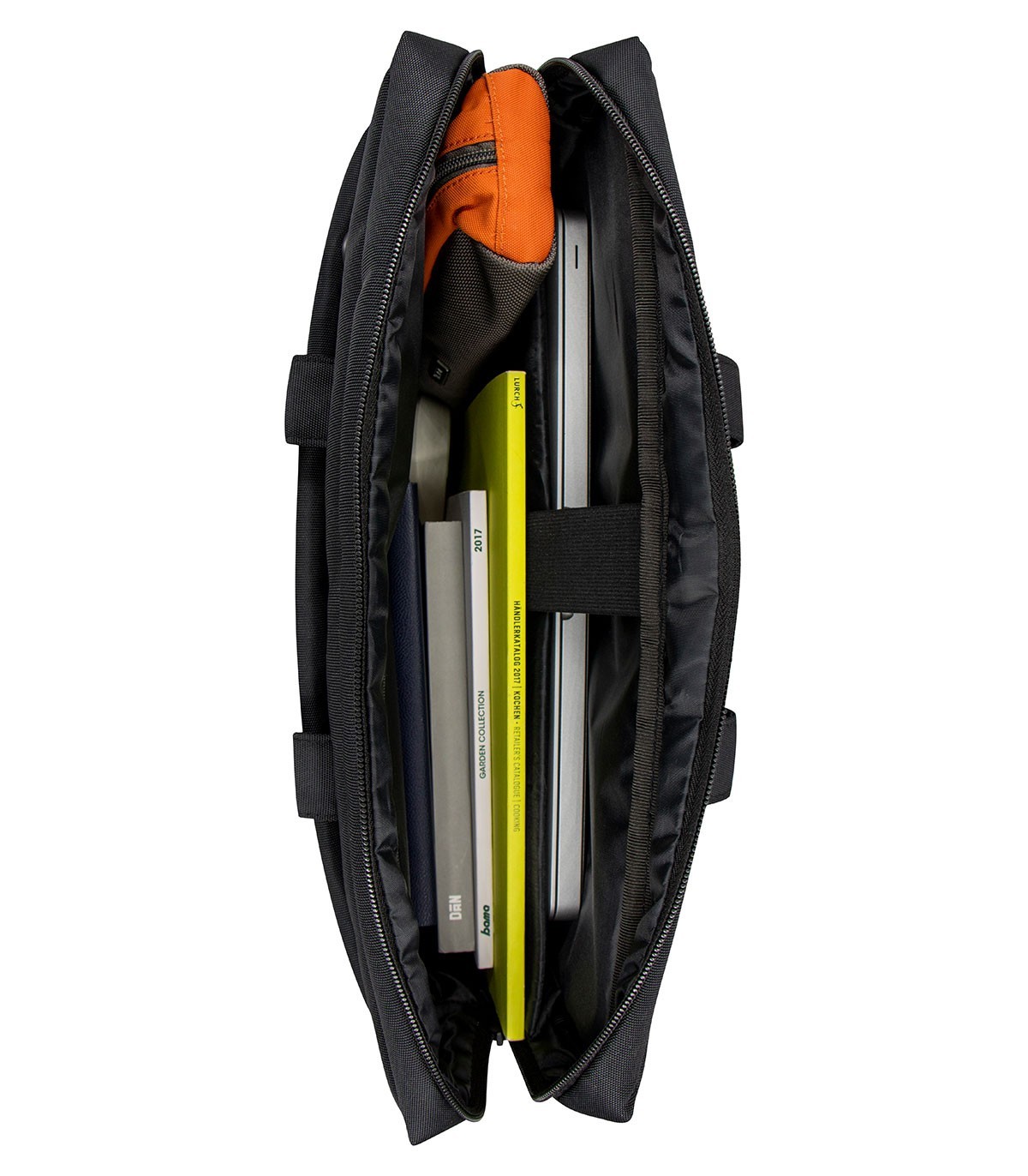 بخش مربوط به لپ تاپ توسط پدهای ضربه گیر بسیار ضخیم از طرفین پوشیده شده است تا حداقل فشار به دستگاه وارد شده و در عین حال حداکثر محافظت صورت پذیرد. از بالا نیز توسط یک بند کشسان از لپ تاپ به خوبی محافظت می شود.