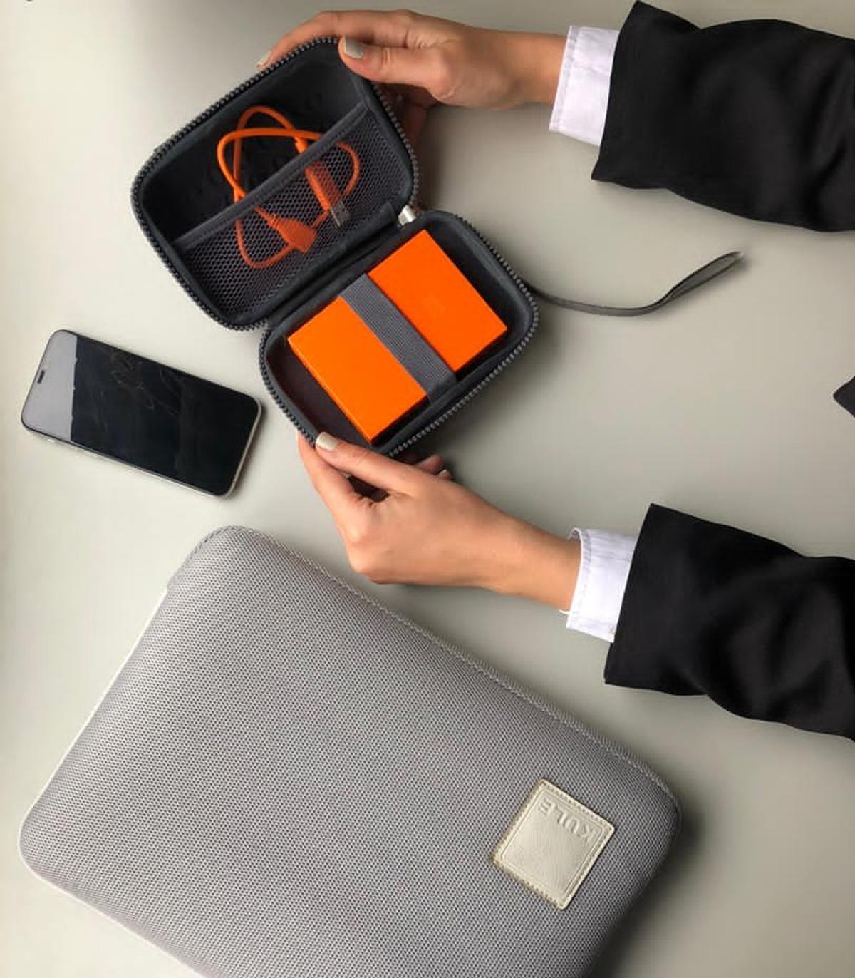 در کیف هارد KULE یک جیب فرعی توری جهت قرار دادن کابل هارد در محفظه ای جداگانه، قرار دارد. دستگاه هارد نیز زیر کشی که جهت محافظت بهتر و ثبات دستگاه درون کیف دوخته شده قرار می گیرد. درزها و محل های اتصال اجزای این کیف بادوام؛ بسیار با مهارت، ظرافت و دقت دوخته و بهم متصل شده اند.