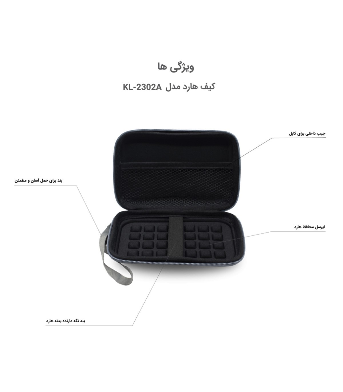 کیف هارد اکسترنال (external hdd) مدل KL-2302A از مواد با کیفیت بالا و مرغوب ساخته شده و دارای طراحی مدرن و بسیار کاربردی است.