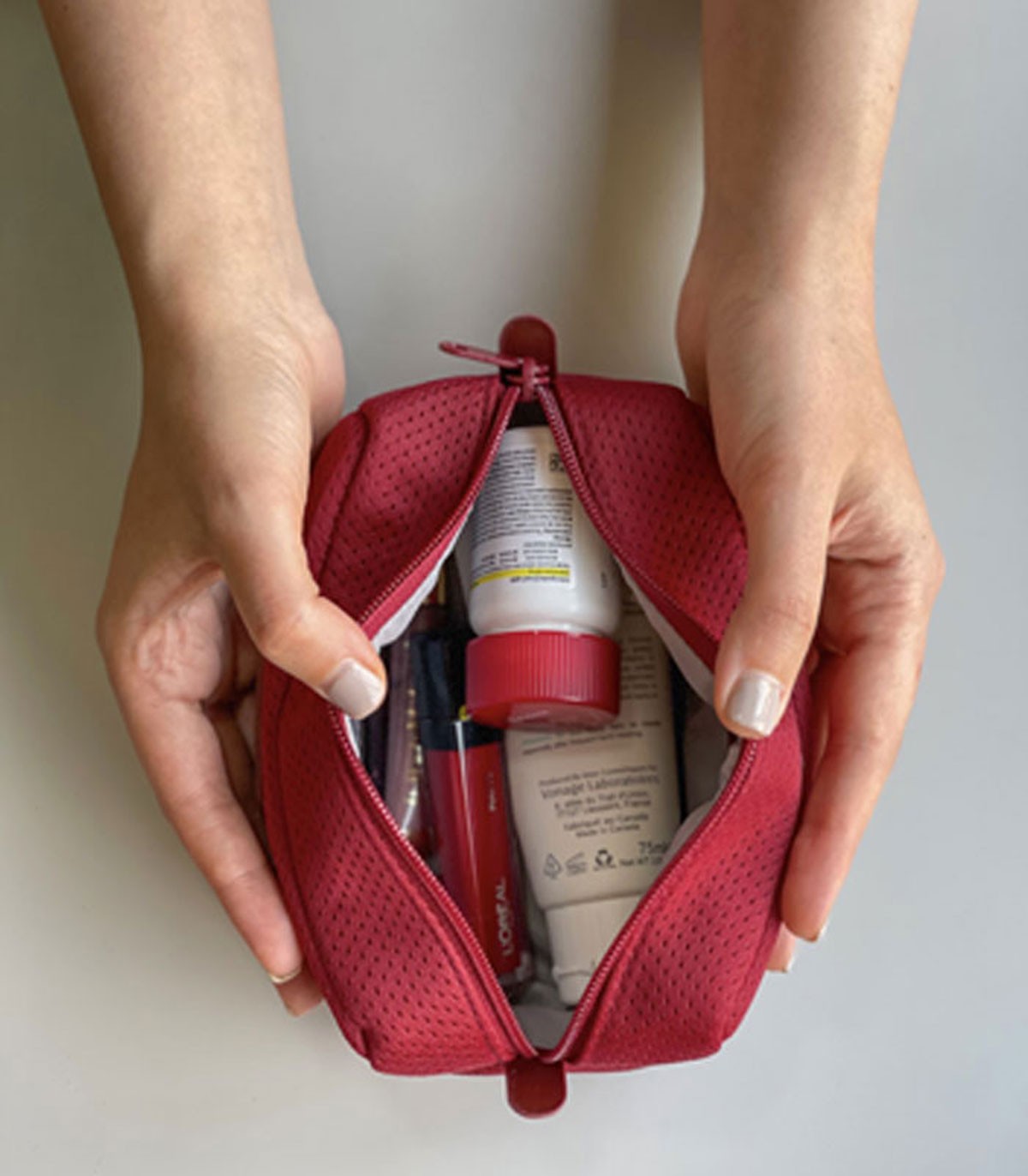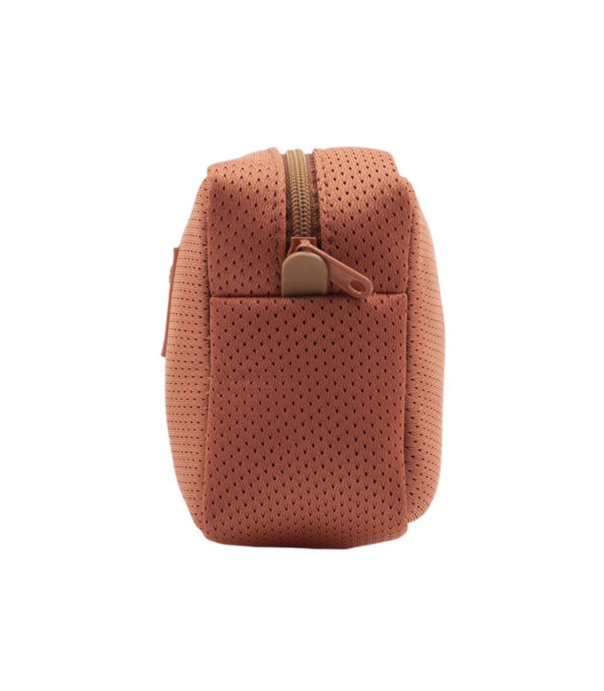 جنس اصلی کیف پارچه مش است که یک لایه ظریف ابری هم به آن متصل شده است، توسط یک زیپ باز و بسته می شود و بسیار مناسب برای قرار دادن کلید، پاوربانک، شارژر، کابل، لوازم آرایش، لوازم التحریر، فلش، ایرفون، دارو و ... می باشد. ضخامت مناسب این کیف و لایه ابری موجود، اثر ضربه های وارده بر اقلام درونش را بر اثر تکان های کیف یا وزن سایر وسایل تا حد مطلوبی خنثی می کند. درزها و محل های اتصال اجزای این کیف بادوام؛ بسیار با مهارت، ظرافت و دقت دوخته و بهم متصل شده اند.
